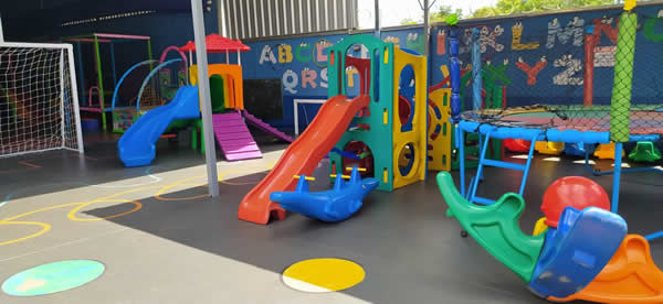 A escola possui um playground amplo com areia tratada mês a mês, evitando assim doenças infectocontagiosa.